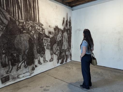 Teatro de Sombras fusiona pasado y presente, el acto de observar y ser observado, y abre la puerta a nuevas interpretaciones de esta escena bélica centenaria pintada por Velázquez.